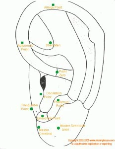 Auricular (Ear) Points (auricular chart)The researchers found that acupuncture with metformin led to better results in both weight loss and sugar control than just metformin alone. They concluded, "acupuncture is an insulin sensitizer and is able to improve insulin sensitivity possibly by reducing body weight and inflammation, while improving lipid metabolism and adipokines, .... electro-acupuncture (EA) might be useful in controlling the ongoing epidemics in obesity and type II diabetes".