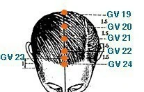 On the Governing Vessel meridian, located 5 cun from the anterior hair line. Generally found by drawing a line between the middle of both ears to the top of your head.