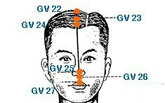 - In an emergency situation acupressure or acupuncture may be used on the acupuncture point GV 26. GV 26 is located between the nose and the upper lip on the midline of the body and you can press it deeply with a fingernail or with your thumb. GV 26 is the command point (link) for fainting and collapse and is used to help people regain consciousness from a variety of causes.
